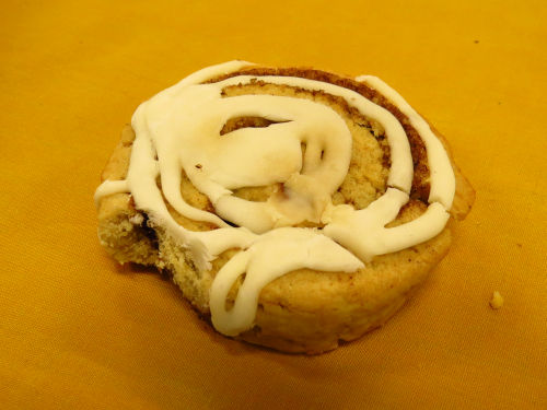 I did get to try something new. I get really jaded about the "stuff" that is being sold. After a while, it all looks alike to me. But one cookie maker was selling cinnamon roll cookies. Had to try that. Sorry, I took a nibble before I remembered a picture. It was really good. A brown sugar dough rolled up with cinnamon like a bun. Glaze on top. Yummy.